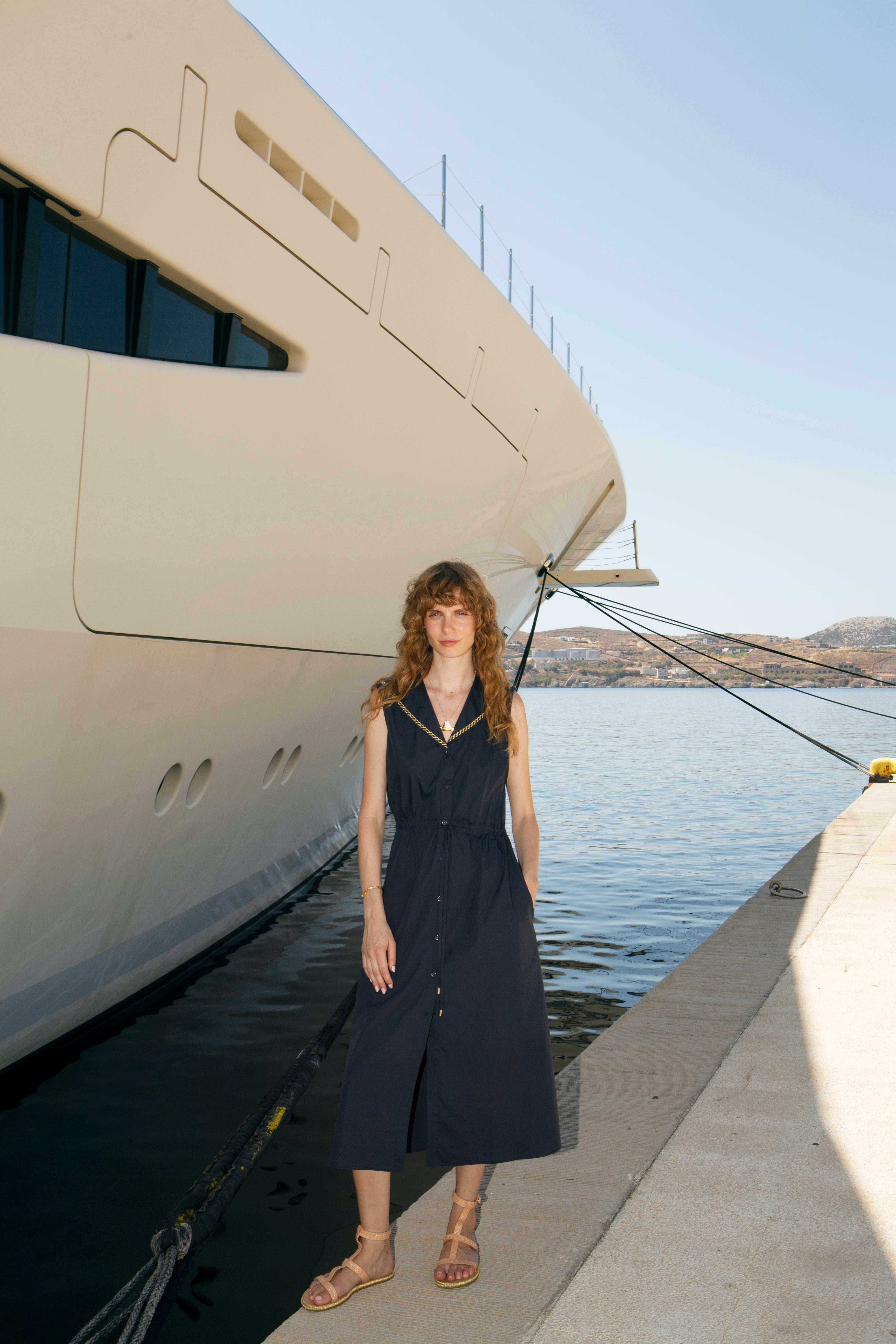 DESIS EMBROIDERED COTTON SAILOR TIE MIDI SHIRT DRESS